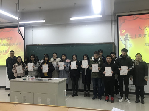 2019年1月2日下午,在幕府校区图教楼205教室召开的第十九期、第二十期党的基础知识培训班结业典礼上,杨一鸣老师对本期培训班工作进行了总结。院党委副书记周建峰宣读了35位优秀学员名单并进行了表彰。院党委书记陈弘对顺利结业的学员表示衷心的祝贺,并向同学们提出三点希望:一、在学习中提高站位,加强党性修养,树立坚定的信念和崇高的理想。二、在奋斗中担当使命,新的时代催生新的使命,新的使命需要新的担当。三、在实践中争做先锋,严格对照党员条件,从严要求自己,在思想政治行为上、生活学习上争做先锋。希望参加此次党的基础知识培训班的学员们能起到党员先锋带头作用,成为身边同学学习的榜样,生活中的楷模。