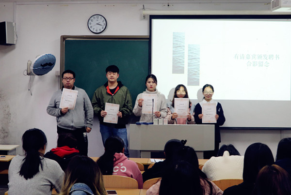 为更好地运营“金科人文在线”微信公众平台,优化运营工作团队,11月7日下午3:00在幕府校区教学楼101,英国上市公司365了“金科人文在线”微信公众平台运营人员换届聘任仪式。本次活动邀请公众号负责辅导高欢欢老师,第一届运营负责人员和全体运营工作团队学生参加了仪式。