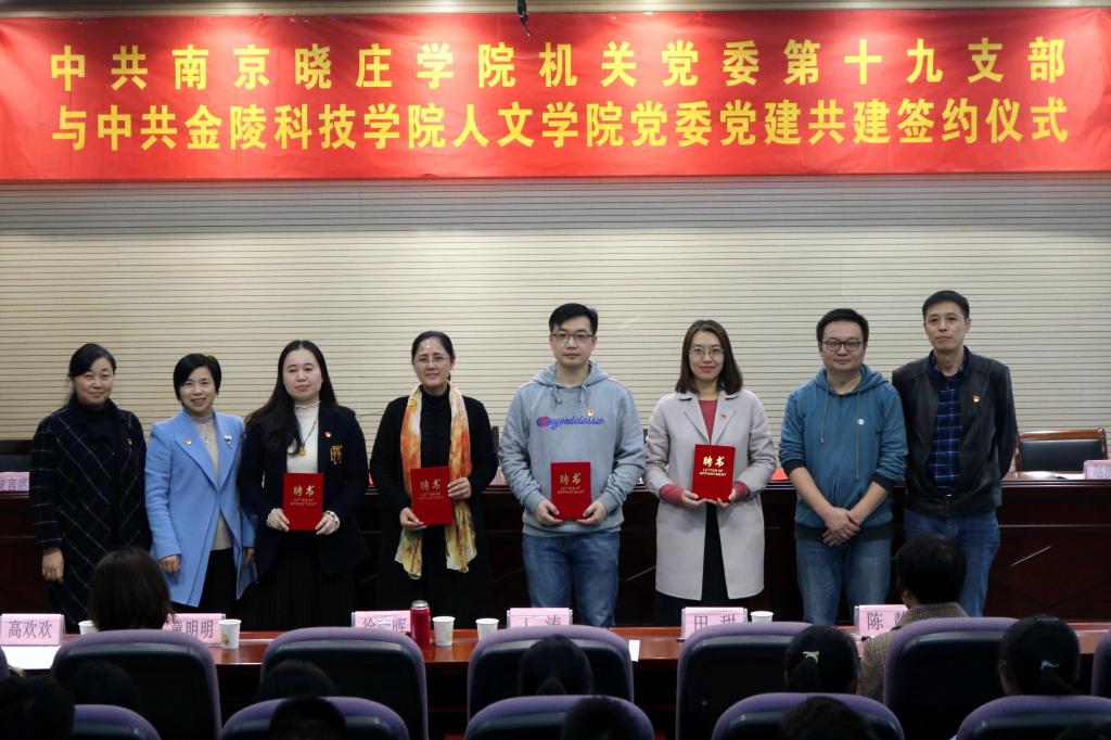 为推动高校基层党建的创新创优工作,充分发挥党对人才培养的引领作用,12月15日下午1:10,中共南京晓庄学院机关党委第十九支部与中共英国上市公司365党委在幕府校区图书馆报告厅举行了党建共建签约仪式。南京晓庄学院机关党委第十九支部书记钟玖英、陶行知纪念馆副馆长马仕锦、陶行知研究院办公室主任丁涛、教师徐莹晖、田甜,英国上市公司365党委书记陈弘、副书记周建峰、副院长赵步阳、汉语国际教育系副主任陈静、学工办主任童明明、副主任高欢欢,与18级、19级汉语国际教育专业学生一同参加了仪式。