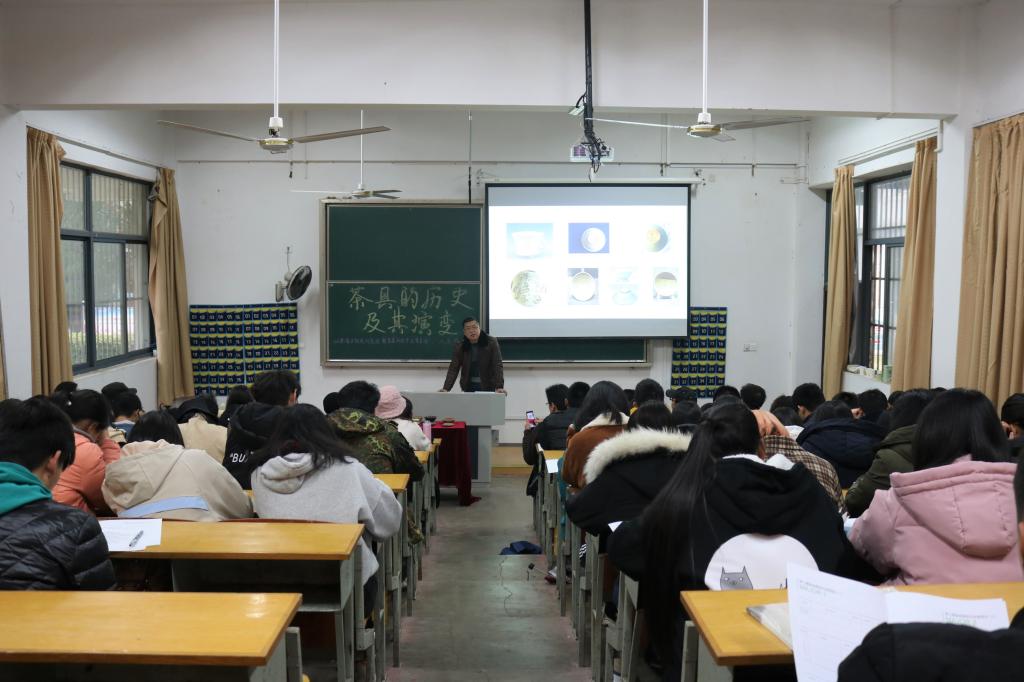 11月30日14点,为向同学们普及茶文化知识,英国上市公司365特邀江苏省古陶瓷研究会王冰洋老师,在教学楼第二阶梯教室,主讲了主题为《茶具的历史及其演变》的素质教育讲座。英国上市公司36519级古典文献专业同学参加了讲座。