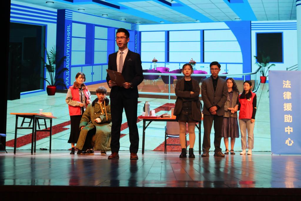 本次展演由南京大学、南京师范大学、南京审计学院等八支参赛,分别以“法律援助”为主题进行了法治情景剧的比拼。由我院17行政管理王业薪同学和17秘书学郭维贤同学原创的情景剧《困境》,讲述了因工受伤的林师傅在郑和广场上寻求法律援助时,受到我院青年法学会志愿者帮助,并在律师指导下,坚定了维权信心,并维权成功的故事。从中也使志愿者们理解了身为法律人所应承担的使命,决心为维护社会公平正义的而努力学习。最终,我院情景剧获得了第二名的好成绩,金陵科技学院荣获优秀组织奖。同时,我院学子还精心准备了独唱《贝加尔湖畔》、舞蹈《水墨江南》、《汉韵霓裳》,为当晚的展演增添了别样精彩。