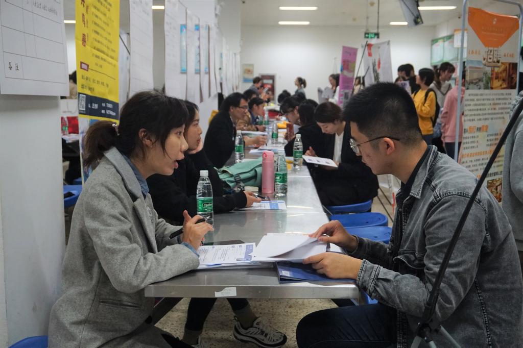 据统计,双选会现场用人单位提供岗位110个,约300名2020届毕业生到达现场,投递简历约615份。今后,我院将进一步加强就业指导服务,为用人单位和毕业生提供更多的接洽机会,着力提升求职成功率和就业质量,帮助毕业生顺利就业。(审稿人:高欢欢)