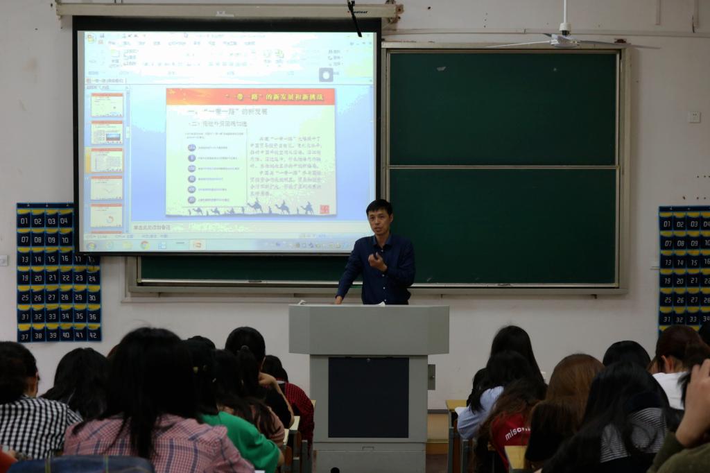 讲座伊始,周书记向同学们阐述了“一带一路”的内涵,通过全球多个国家和国际组织的努力,“一带一路”也逐渐从理念转化为实际行动。随后,周书记详细地介绍了“一带一路”对基础设施、旅游留学等方面,不仅能给中国带来实实在在的好处,更能惠及沿线各国及世界。他认为“一带一路”不仅带给我们机遇,同时也在经济和政治上带来种种挑战。最后,周书记强调新时代的大学生要根据大学学习生活的特点,找准自己的发展目标,定位自己的发展方向。