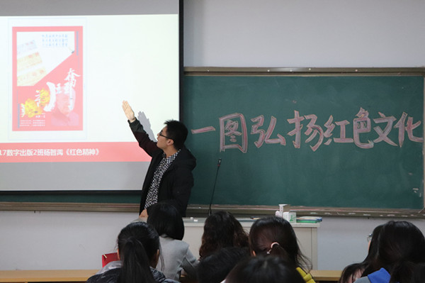 11月14日下午1:30,英国上市公司365的“一图弘扬红色文化”图文设计大赛在图教楼B509如期举行。本次比赛由我院综合办臧扬杨老师、学工办高欢欢老师担任评委,来自16级、17级、18级数字出版专业的22名同学进行了现场比拼。