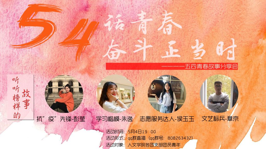 为引导广大青年传承共产主义青年团的光荣传统,弘扬新时代青年的青春敢担当、勇作为的精神,5月4日晚7:00,我院举办了以“五四话青春,奋斗正当时”为主题的青春故事线上分享会。共有来自各团支部的90多名优秀团员参加了此次活动,我院团总支学生副书记蔡旻昱担任主持。