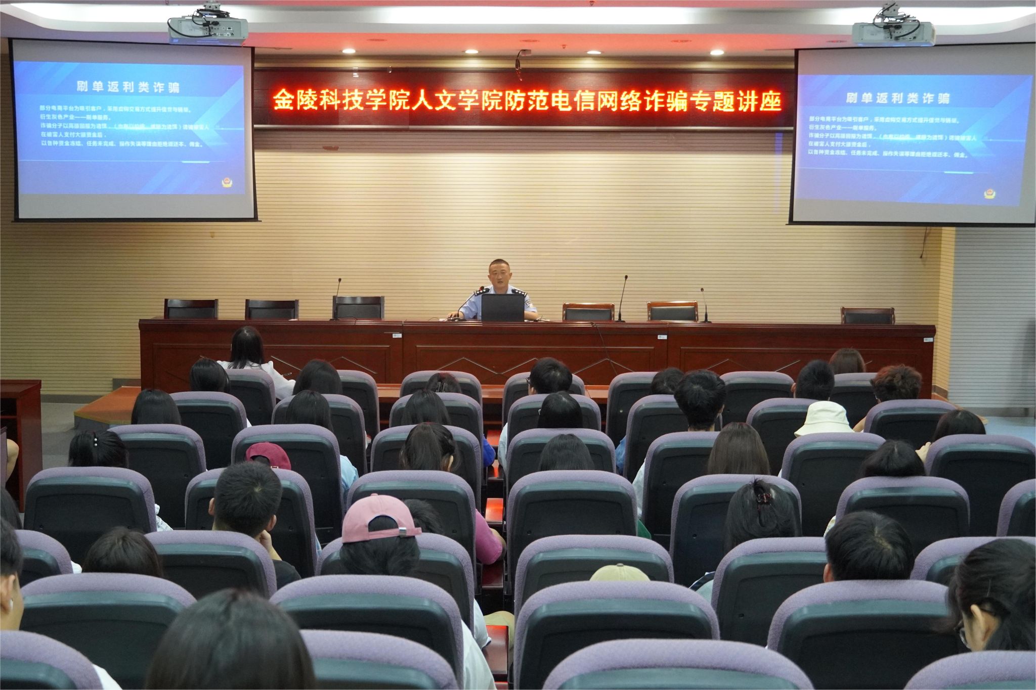 为提高我院学生反诈意识,预防和减少校园诈骗案件的发生。英国上市公司3656月21日上午10:30,在幕府校区图书馆报告厅开展了“防范电信网络诈骗”专题讲座。学院有幸邀请了南京市公安局栖霞分局内保大队金又金警官,开展了《筑牢安全防线,共创美好明天》的主题讲座。英国上市公司365党委副书记韩铖、辅导员张琳老师以及各班级安全员、宿舍安全员及部分学生代表参加了本次讲座。