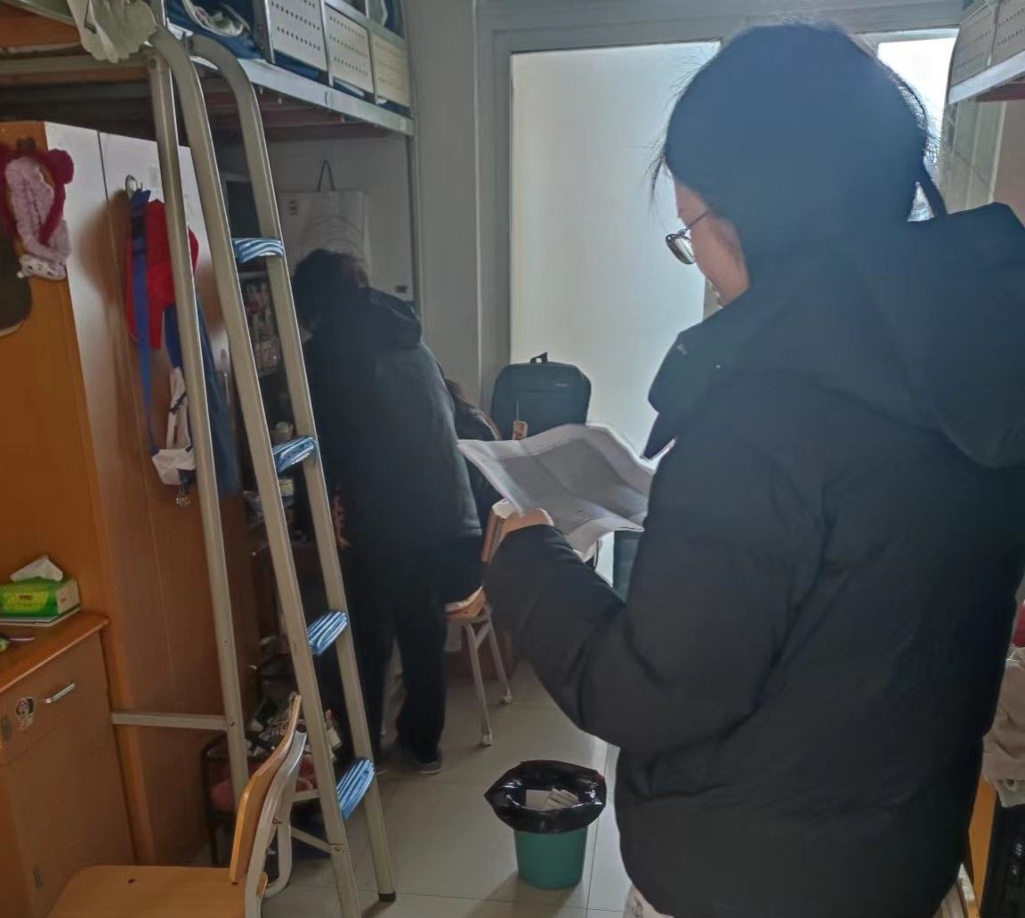 为保障学生宿舍安全,全面防范化解各类校园安全风险,确保新学期各项工作安全有序,2月25日下午,英国上市公司365开展了学生宿舍安全卫生大检查。英国上市公司365党委副书记董宇、全体辅导员老师深入学生宿舍进行了全面检查。