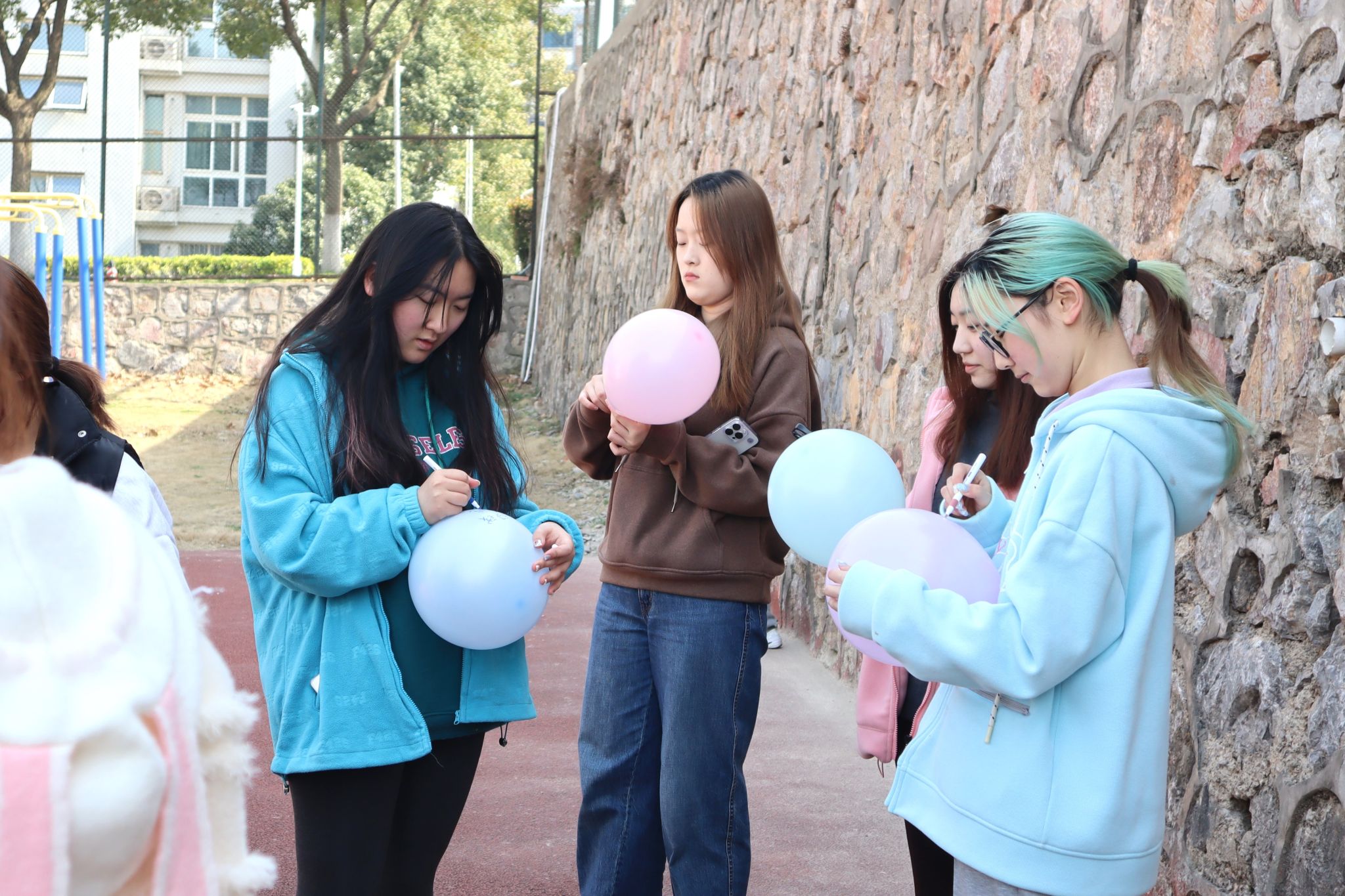 本次活动分为三个环节,即春日“爆”烦恼(参与者将自己的烦恼写在气球上,随后将气球踩爆,以象征烦恼消除)、“呆”会儿,在春天(参与者坐在一起,进行一场发呆比赛。在规定时间内,谁能保持最专注、最放松的状态最久谁就获胜)、快乐“装”瓶中(在彩纸上写下自己的美好瞬间或积极想法,将它们放入小玻璃瓶中收藏)。同学们将载有烦恼的气球扔在地上,并重重地将其踩破,一切不愉快在起伏的“嘭嘭”声中消散。