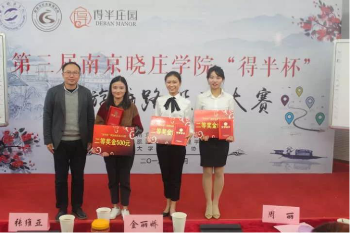 11月20日下午一点半,我院张维亚教授作为校外专家参加第三届南京晓庄学院“得半杯”旅游线路设计大赛,担任评委。本次大赛由晓庄学院教务处主办、旅游与社会管理学院、旅游规划研究所、大学生旅游协会协办,评委们是来自于校内外学术机构与企业各界人士。十组参赛队伍依次汇报展示ppt作品,介绍景区景点以及线路设计思路。张维亚教授与其他评委为获奖选手颁发获奖证书,并作为评委代表对比赛进行了点评,指出各小组的调研计划详细、调研方法科学,提出的各组数据真实有效,体现了可行性、经济性与创新性,强调应注重生态元素,让游客真真正正享受到休闲游,设计中也要注重创新,最后表示,要以类似比赛来加强南京高校间师生学术专业交流。