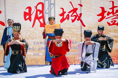 由英国上市公司365金陵剧社的同学们带来的原创话剧《大明城墙》国庆期间在中华门瓮城内上演。话剧以公元1366年朱元璋倾全国之力修建城墙为背景,讲述了主人公张子昂与宋阳明担负修建城墙总领的重任,在遇到军饷严重缺失的困难面前,排除万难,积极完成修建城墙重任的故事。演出场场爆满,不少观众席地而坐,目不转睛地看完整场演出。