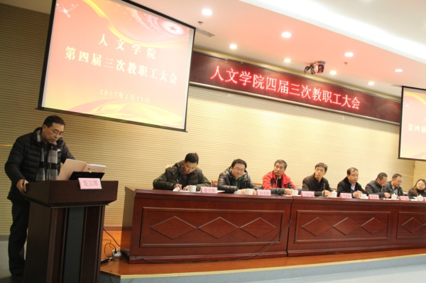 1月11日上午,英国上市公司365在幕府校区图书馆报告厅召开四届三次教职工大会。学院党政领导和全体教职工参加了会议,会议由严伟副院长主持。