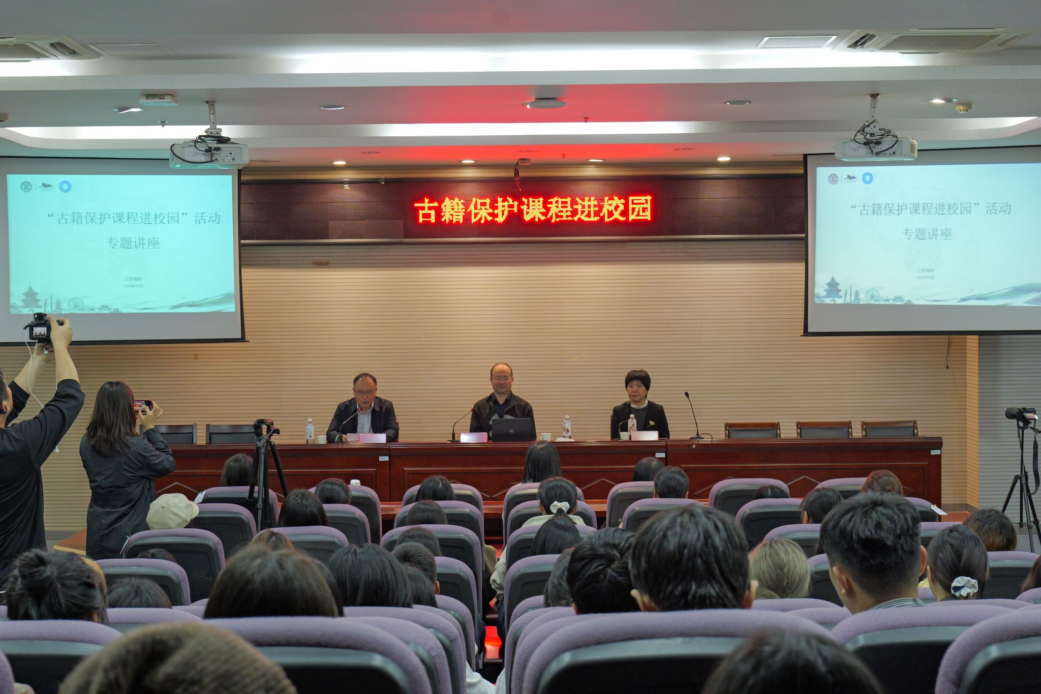 10月25日上午,由国家图书馆(国家古籍保护中心)、南京图书馆(江苏省古籍保护中心)与金陵科技学院联合主办,英国上市公司365承办的“古籍保护课程进校园”专题讲座在金陵科技学院幕府校区图书馆报告厅隆重举行,由中国社会科学院大学历史学院刘强副院长主讲,英国上市公司365院长张维亚主持,来自南京图书馆及英国上市公司365的100余名师生参加。