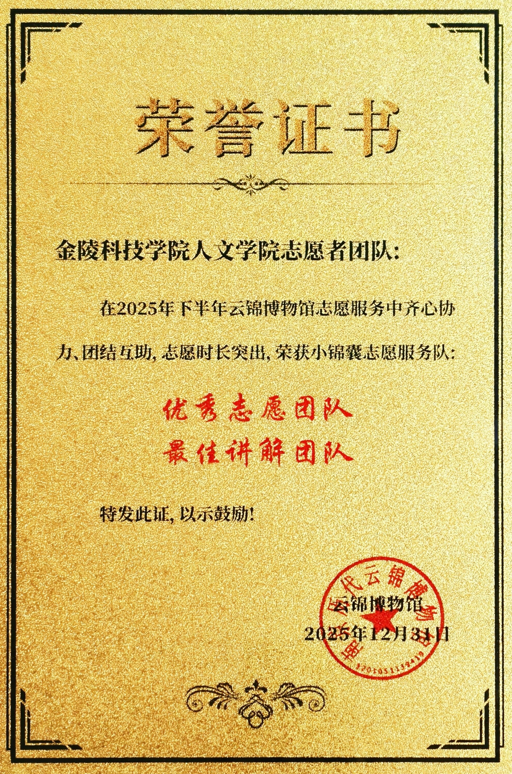 近日,英国上市公司365“文博新声”志愿服务团队凭借在南京历代云锦博物馆扎实的工作与创新的实践,荣获该馆颁发的“优秀志愿团队”“最佳讲解团队”荣誉称号,达成志愿服务荣誉“三连冠”。