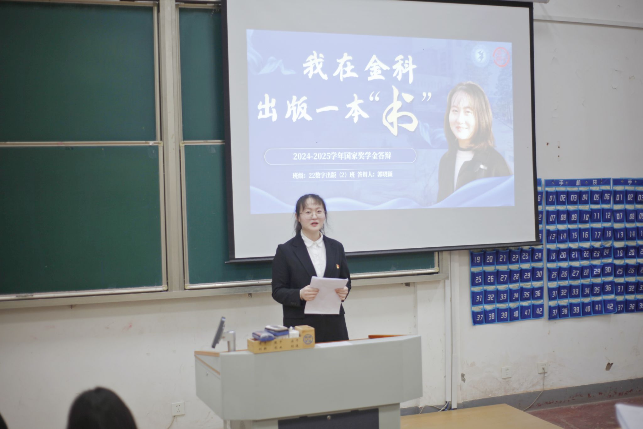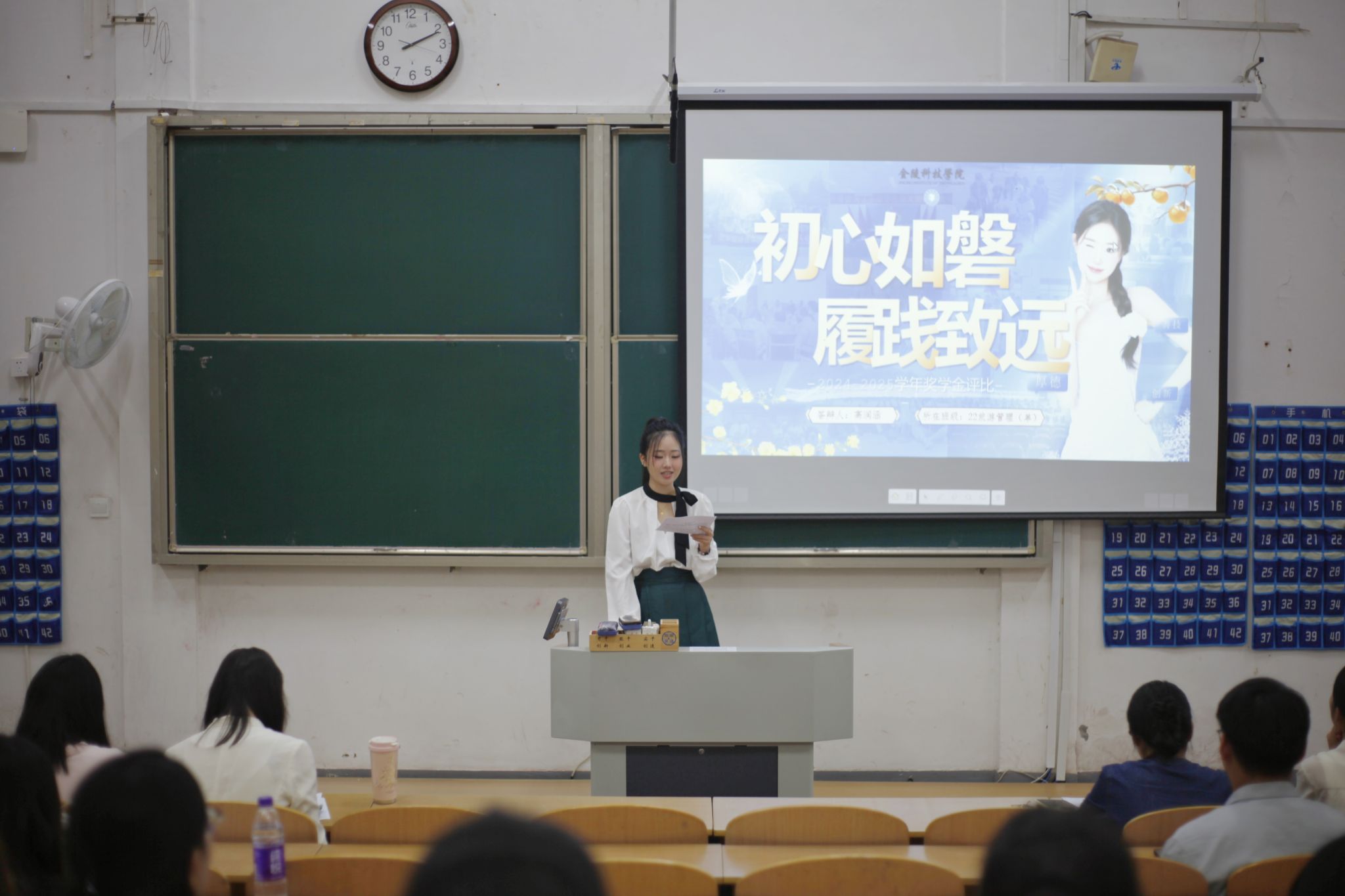 本次评审会,全院共17位同学入围了评审环节。现场老师从思想品德、专业素质、社会实践与综合素质和汇报展示四个方面,全方位考察学生的综合素质。答辩环节,17位同学依次上台,从思想进步、学业成绩、科研项目、社会实践等多个角度进行了展示,充分展现了多彩大学生活的收获和成长。来自旅游管理专业的高润涵同学以旅游专业实践为主线,生动分享了自己在学科竞赛、创新创业项目以及担任文旅推广官等实践过程中的宝贵经验。刘韵哲同学结合行政管理专业特色,详细展示了在学术论文发表、创新项目开展以及志愿服务等方面取得的成果,凸显了行政管理专业学生的专业素养与社会责任感。朱美宣同学则围绕古典文献专业,汇报展示了自己的古籍修复实践、中华古籍保护志愿活动,展现了对传统文化的热爱与传承。郭晓颖同学以“我在金科出版一本书”为题,分享了在大学生里如何追逐光,成为光,散发光的深耕故事,凸显了数字出版专业的特色和创新。